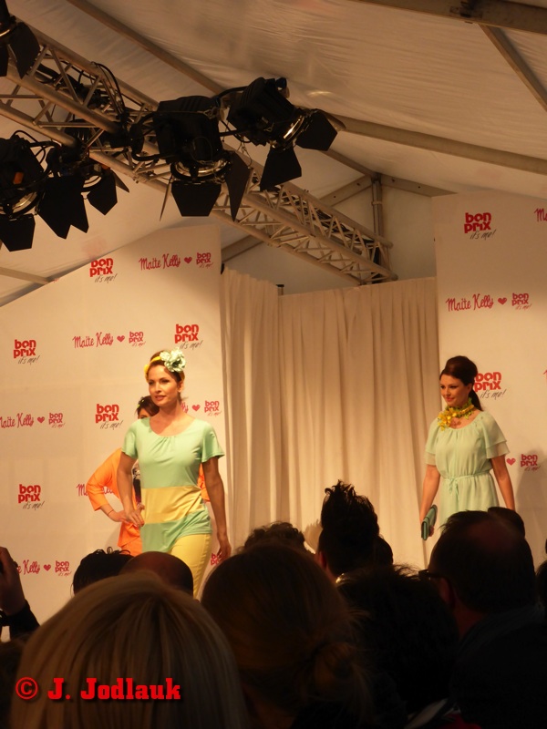 Während mir die pastellfarbenen Kleidungsstücke wirklich gut gefielen, sind mir die Muster irgendwie zu unruhig, bzw. wirken mir zu altbacken. Als Models wurden sowohl Übergrößen-Models, als auch schlanke gewählt. Dieses begründete Maite Kelly mir mit den Worten, dass sie beides haben wollte, um keine Gruppe zu diskriminieren. Recht hat sie. Ich persönlich fand übrigens die etwas kräftigeren Models wesentlich hübscher. 😉