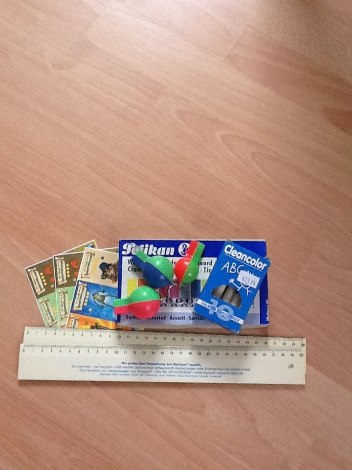 An Tag zehn gab es einen bunten Mix aus zwei Linealen, drei Stickerbögen, zwei Paketen Kreide und drei Trillerpfeifen.