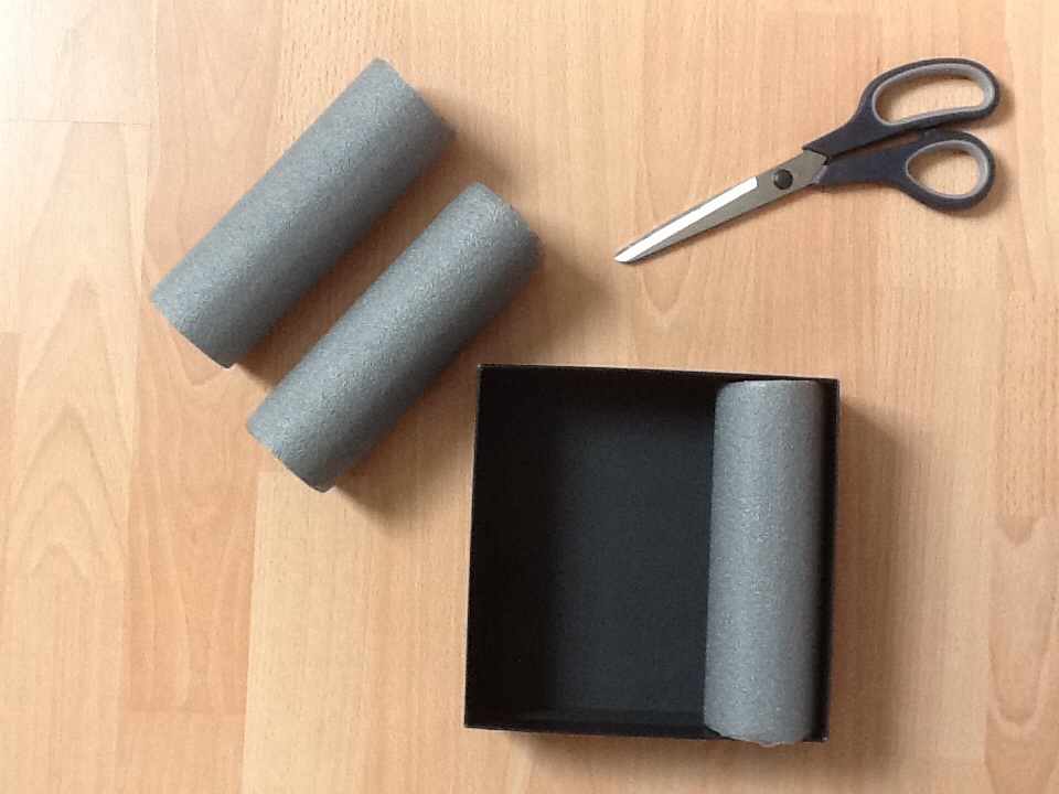 1. Miss die Breite deiner Schachtel und ziehe davon ca. 3 cm ab.