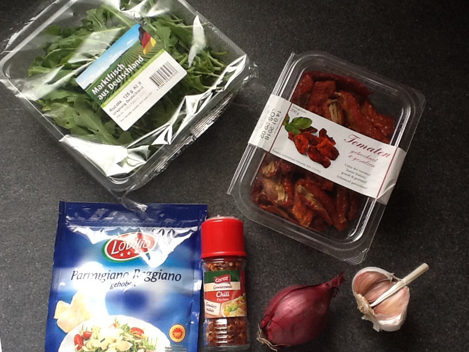 Heute stelle ich dir ein weiteres Rezept der enerBio Kochschule vor. Es handelt sich um ein ausgefallenes, sehr leckeres Hauptgericht: Berglinsen mit Nudeln, getrockneten Tomaten und Rucola.