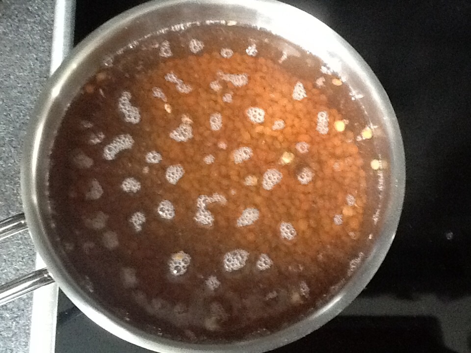 Zuerst werden die Linsen gewaschen und nach Verpackungsangaben gegart, in meinem Fall habe ich sie 25 Minuten gekocht. Zeitgleich werden die Nudeln bissfest gegart. Das dauert ca. 8 Minuten.